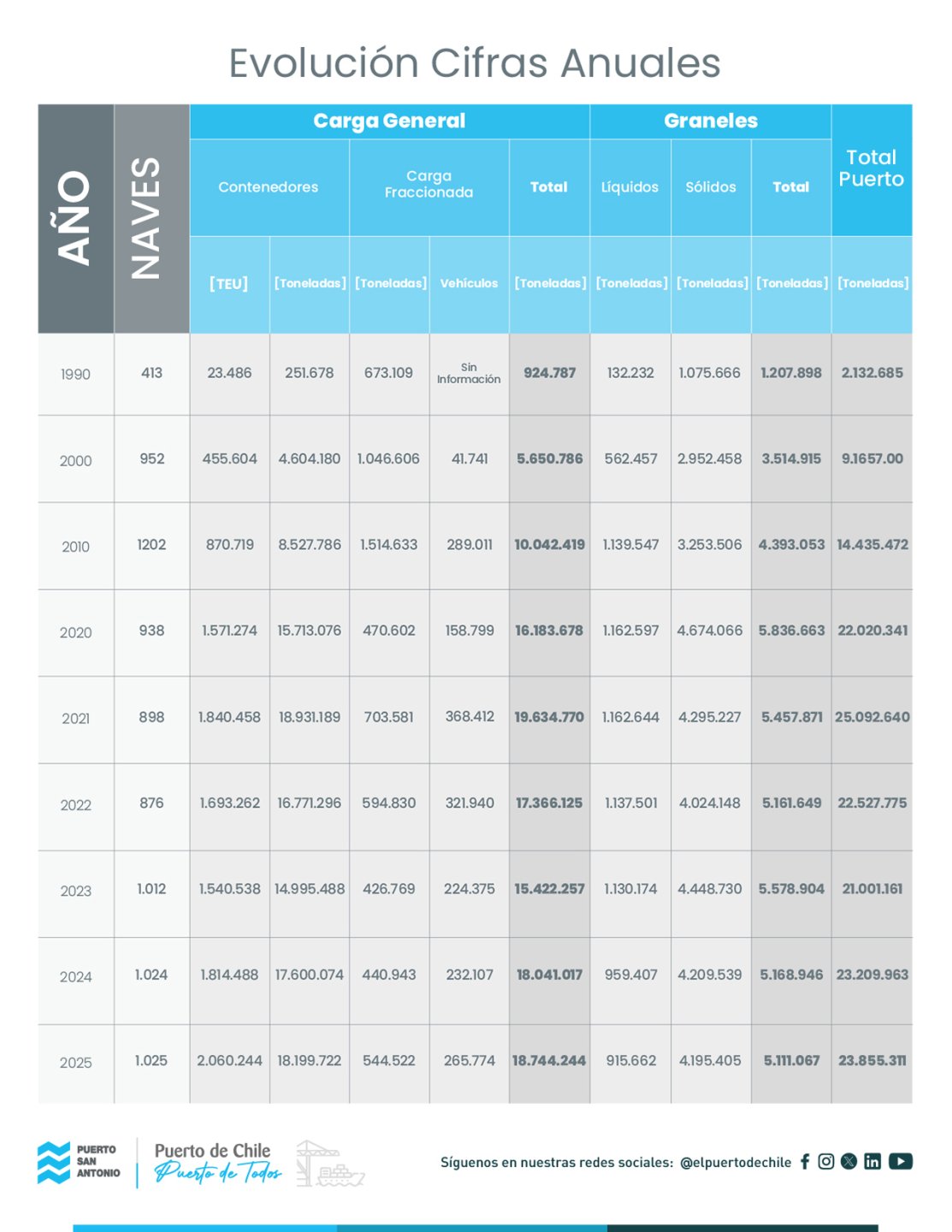 Durante 2025, Puerto San Antonio transfirió 23.855.311 tonelada