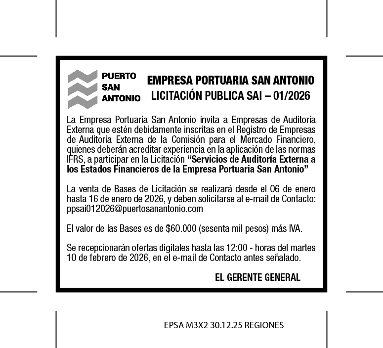 SERVICIOS DE AUDITORIA EXTERNA A LOS ESTADOS FINANCIEROS DE LA EMPRESA PORTUARIA SAN ANTONIO |
