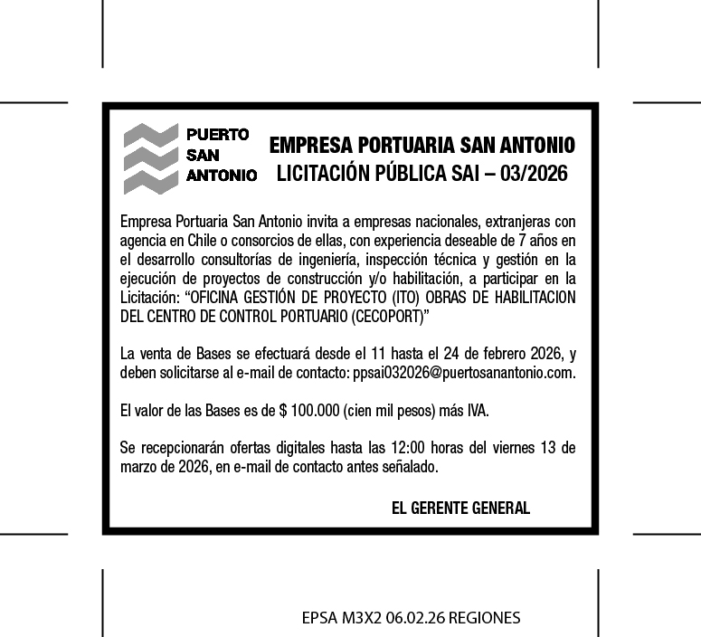 MEJORAS PLISA III EMPRESA PORTUARIA SAN ANTONIO |