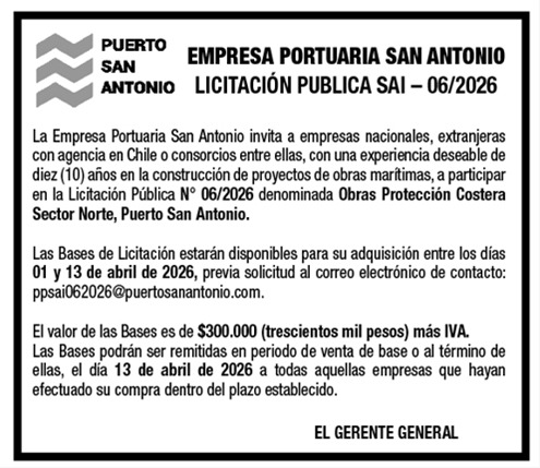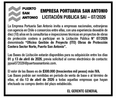 CONTRATACIÓN DE SERVICIOS OPERACIONALES, ADMINISTRACIÓN Y EXPLOTACIÓN DE ESTACIONAMIENTOS EN LOS RECINTOS E INSTALACIONES DE LA EMPRESA PORTUARIA SAN ANTONIO |